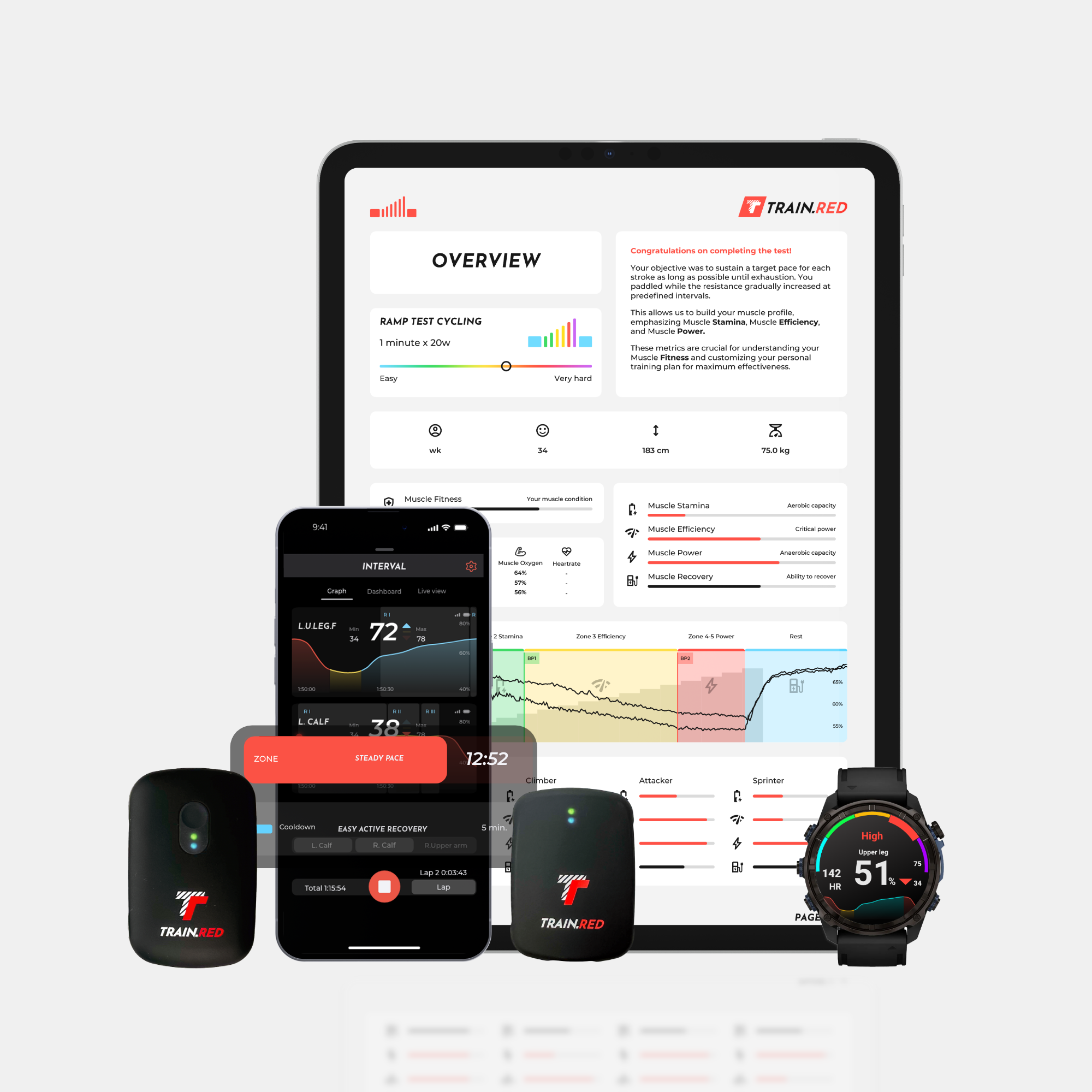 Trainieren Sie intelligenter mit Train.Red! Arbeiten Sie hart und ruhen Sie sich zur richtigen Zeit aus, indem Sie die Erkenntnisse Ihrer Muskeln in Echtzeit nutzen. Bei der Ausdauer geht es darum, Ihre Energie sinnvoll einzusetzen - lassen Sie sich von Ihren Muskeln durch leichte und harte Trainingseinheiten leiten.